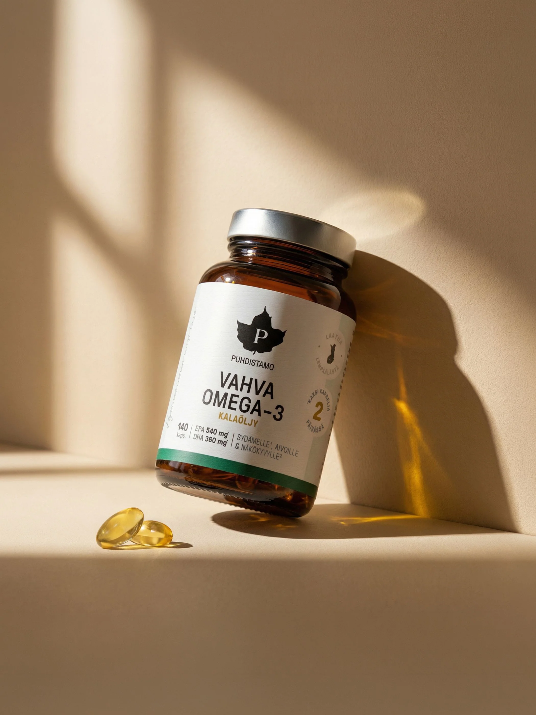 Vahva Omega-3 on triglyseridimuotoinen kalaöljyvalmiste, joka on suunniteltu täydentämään välttämättömien rasvahappojen saantia sekä tukemaan sydämesi, aivojesi ja näkökykysi normaalia toimintaa.