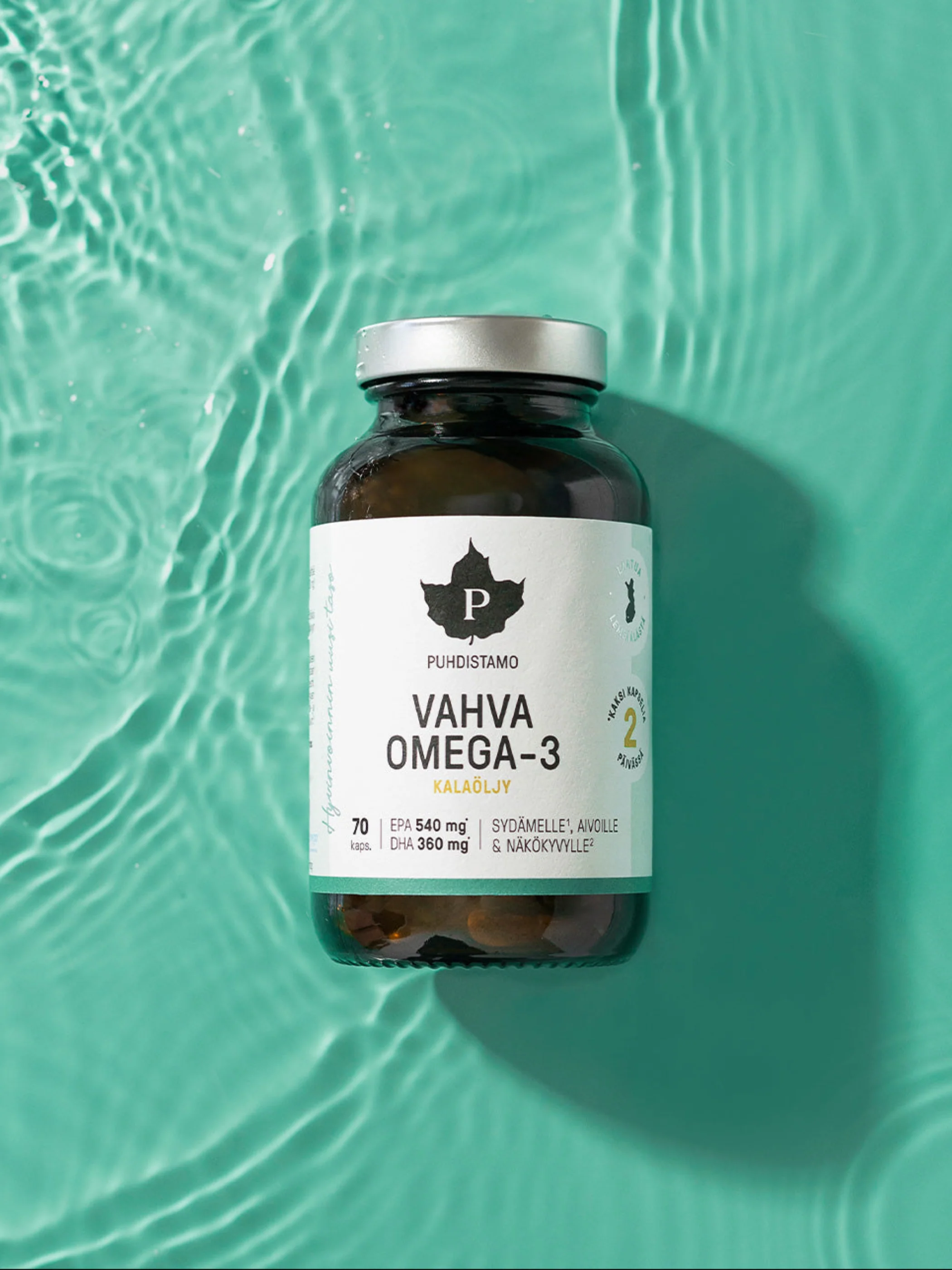 Vahva Omega-3 on triglyseridimuotoinen kalaöljyvalmiste, joka on suunniteltu täydentämään välttämättömien rasvahappojen saantia sekä tukemaan sydämesi, aivojesi ja näkökykysi normaalia toimintaa.